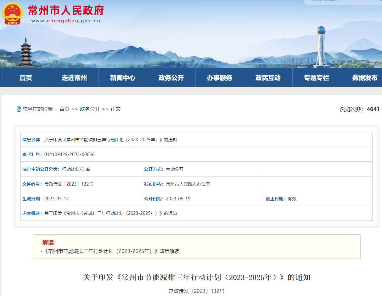 2023年5月12日,常州市人民政府印發了《常州市節能減排三年行動計劃(2023-2025年)》的通知。(以下簡稱:《通知》)