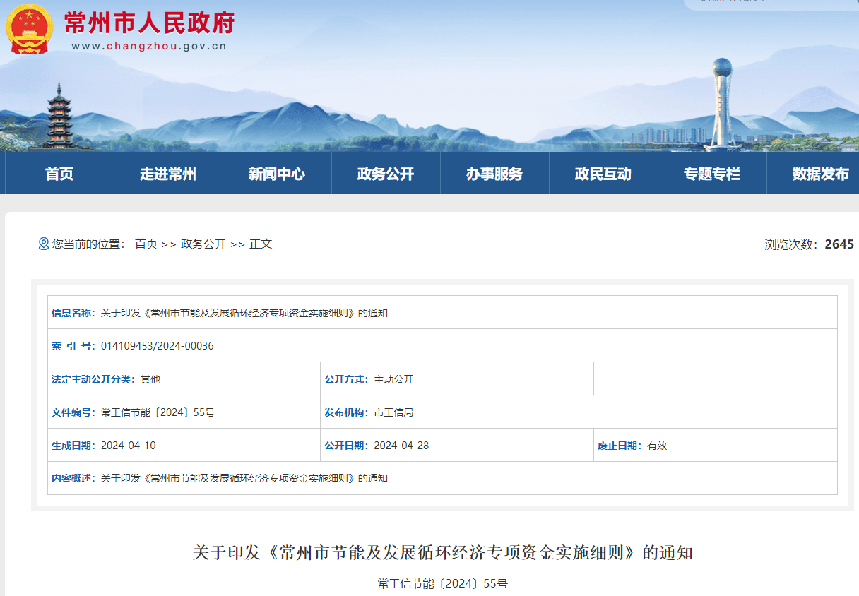 在去年4月,常州市工信局、財政局業聯合印發了《常州市節能及發展循環經濟專項資金實施細則》。(以下簡稱:《實施細則》)