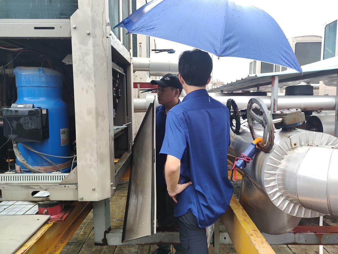 但是,這次德力智控團(tuán)隊僅僅選取了中山市亞朵酒店樓頂?shù)钠渲幸慌_模塊機(jī)測算。