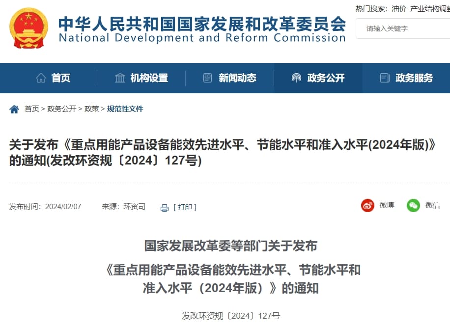 在今年2月,國家發(fā)展改革委等部門印發(fā)了《重點(diǎn)用能產(chǎn)品設(shè)備能效先進(jìn)水平、節(jié)能水平和準(zhǔn)入水平(2024年版)》的通知,其中明確了在原有的設(shè)備基礎(chǔ)上,再新增23種產(chǎn)品設(shè)備或設(shè)施,基本實(shí)現(xiàn)重點(diǎn)用能產(chǎn)品設(shè)備全覆蓋,進(jìn)一步支撐重點(diǎn)領(lǐng)域節(jié)能減排降碳。