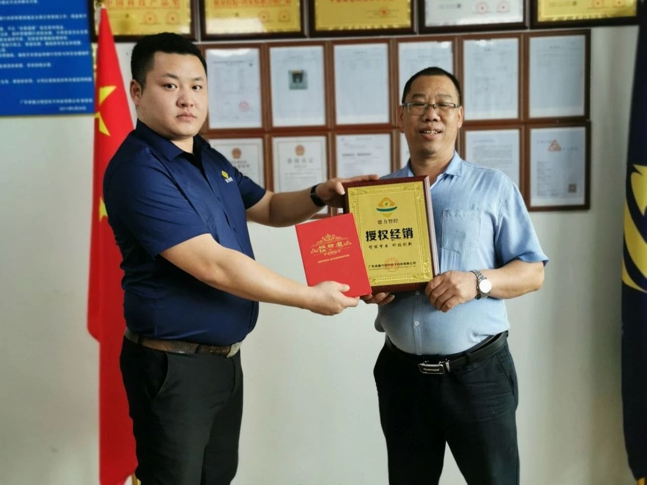 2020年伴隨著我司德力智控品牌影響力提升和產(chǎn)品效果的呈現(xiàn),我司德力智控總公司簽約不斷,喜訊接踵而至。中山市橫欄鎮(zhèn)的經(jīng)銷商胡總,經(jīng)過一段時間的雙方共同考察空調(diào)節(jié)能市場,終于與我司德力智控簽訂了加盟合同。