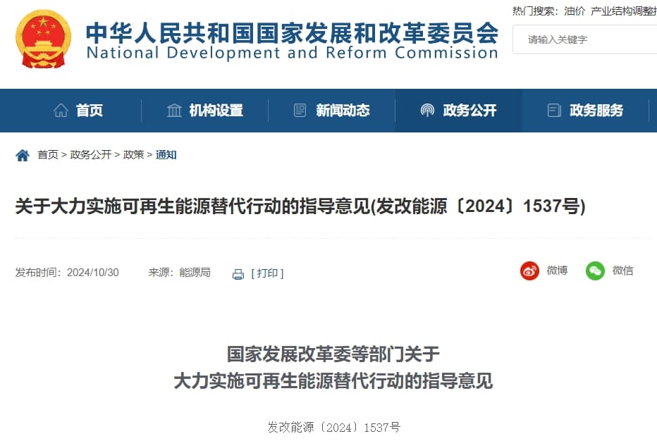 10月30日,國家發展改革委、國家能源局等六部門聯合制定了《大力實施可再生能源替代行動的指導意見》(以下簡稱:指導意見)。