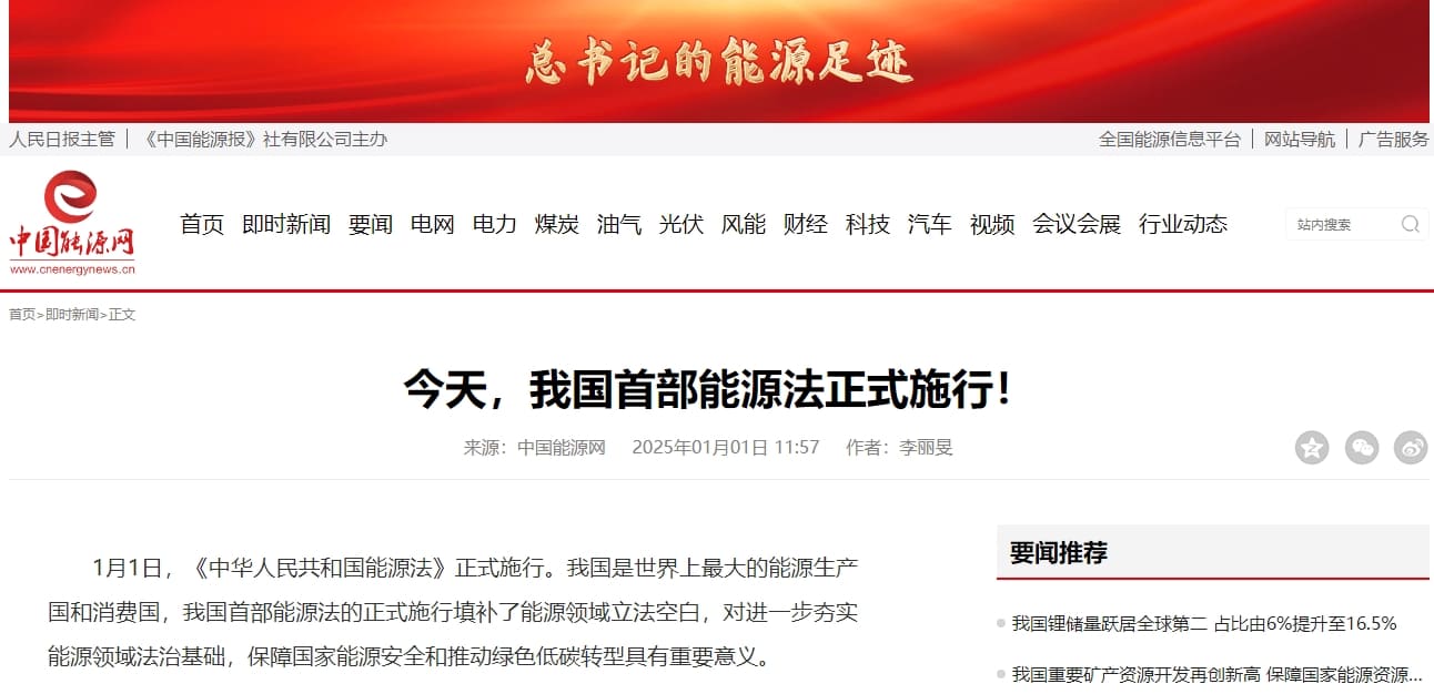 1月1日,我國首部能源法正式施行。能源法在能源綠色低碳發(fā)展方面,確立了一系列創(chuàng)新機制,同時,還設(shè)立了可再生能源消費最低比重目標(biāo)制度,推動社會形成綠色低碳的生產(chǎn)生活方式。