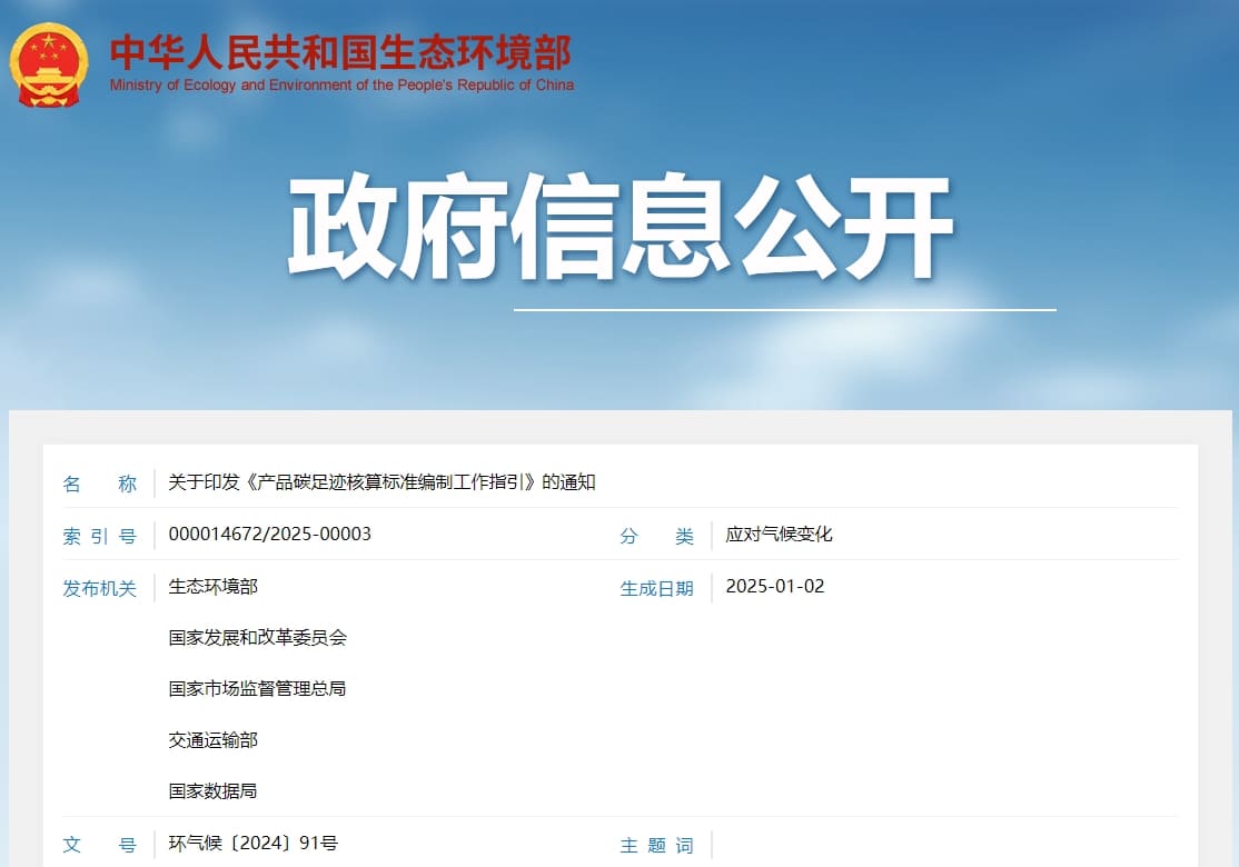 1月2日,生態(tài)環(huán)境部聯(lián)合國家發(fā)改委等相關(guān)部門,印發(fā)了《產(chǎn)品碳足跡核算標(biāo)準(zhǔn)編制工作指引》(以下簡稱:工作指引)。